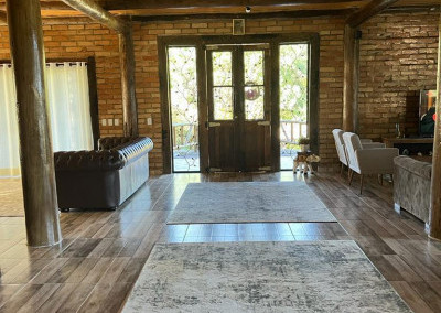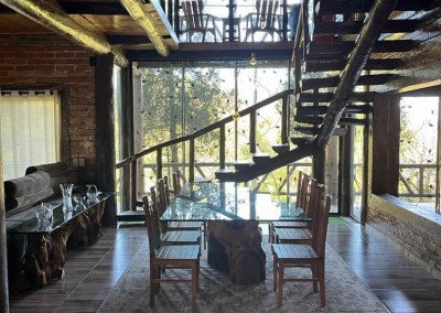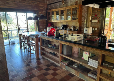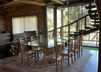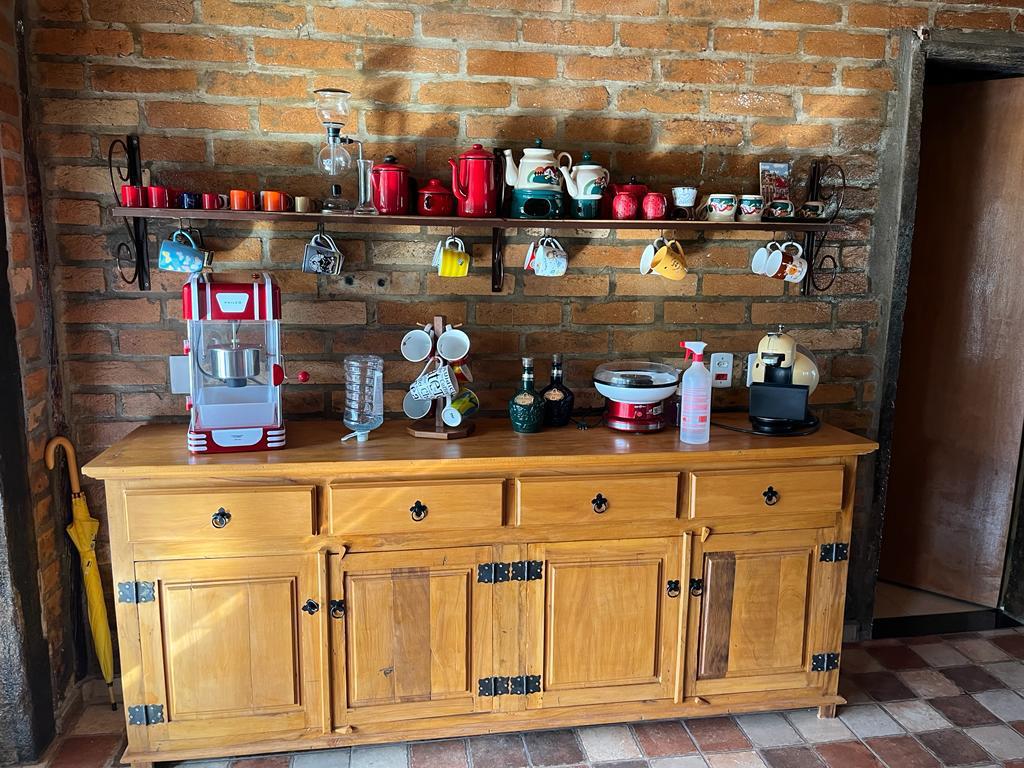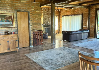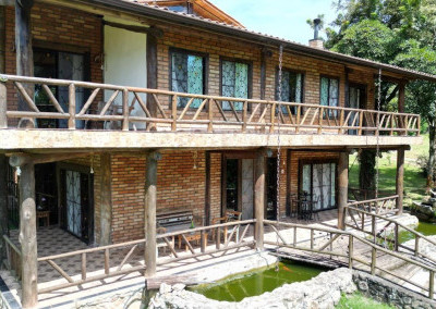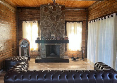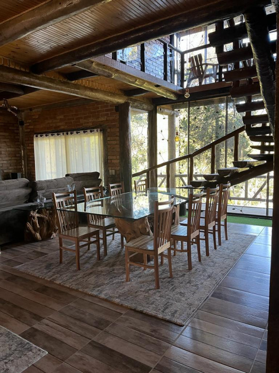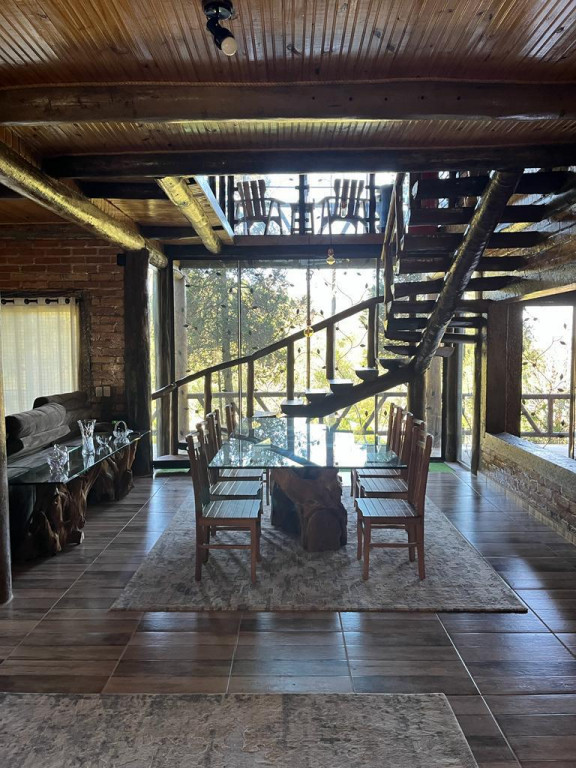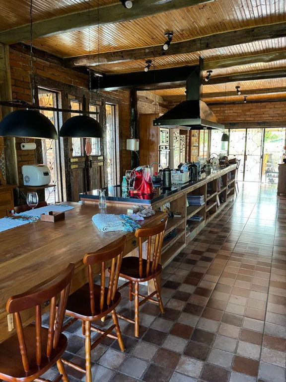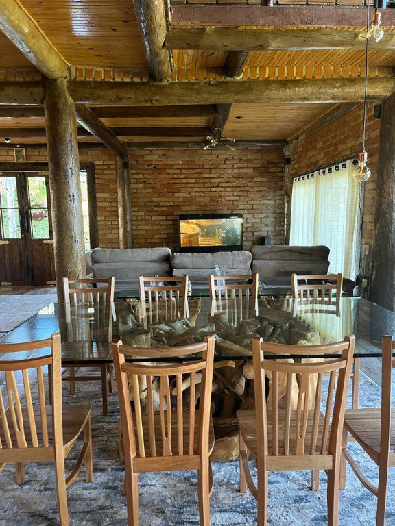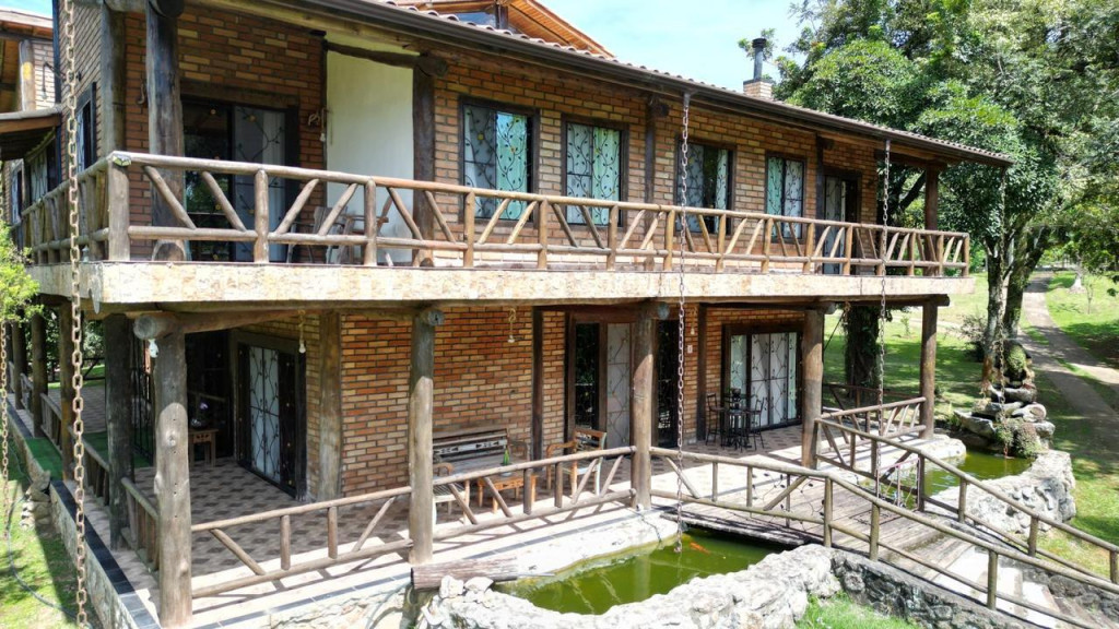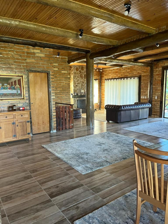 Casa principal com seis suítes todas com banheira de hidromassagem, sala de TV, sala de Lareira, sala de jantar, e cozinha de 80m2 tudo em conceito aberto, possui adega para aproximadamente 2.000 garrafas, sala de cura para queijo, cinema para 10 pessoas, construção em tijolos coloniais , dormentes , cruzetas, ferro, possui um salão de festa de 400m2 todo feito em postes e tijolos , mais dois salões um de 400m2 e um de 250m2 , já possui extrutura pré pronta para mais um salão de 450m2 próximo à piscina .